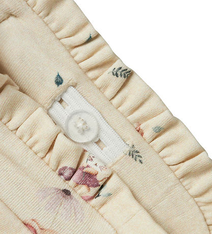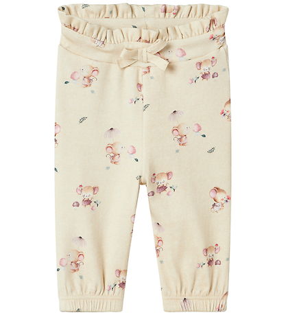 Charming trousers from Name It in a melange, beige shade and with a cute print of little mice. The Name It trousers have an elastic waistband with a decorative bow at the front, which provides a good fit. The legs are finished with elastic edge, which ensures that the trousers fit well.