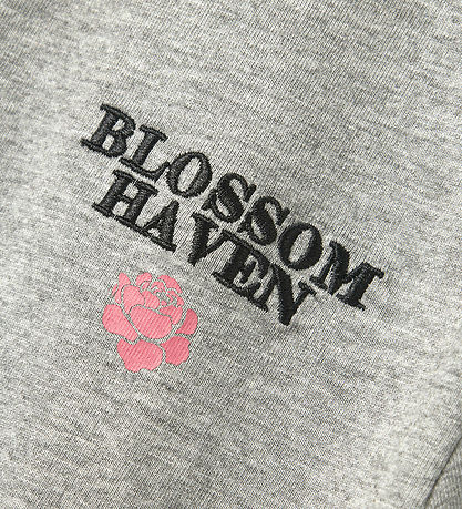 The T-shirt has a minimalist print with the text "Blossom Haven" on the chest and back. The Name It t-shirt has a round neckline and short sleeves, giving a classic look.