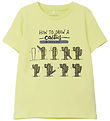 Beautiful Name It t-shirt in lime green with a front print of the text "How to draw a cactus ", where you see nine different drawings of how to draw a cactus.