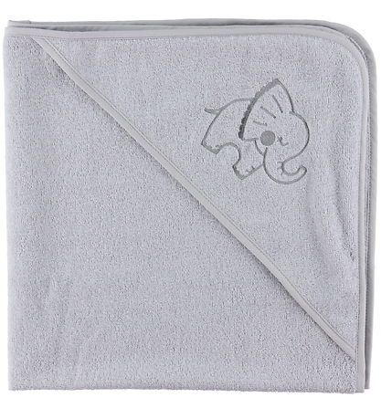 Beautiful Nørgaard Madsens Baby towel in light grey with an embroidered elephant on the hood.