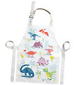 The OYOY apron has drawstring, which are tied on the back and around the neck. The Apron is perfect for the kid who wants to help in the kitchen.