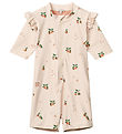 A lovely Reima coverall swimsuit in a light purple with an abstract floral motif that adds a playful touch. It's a comfortable and practical solution for water play.