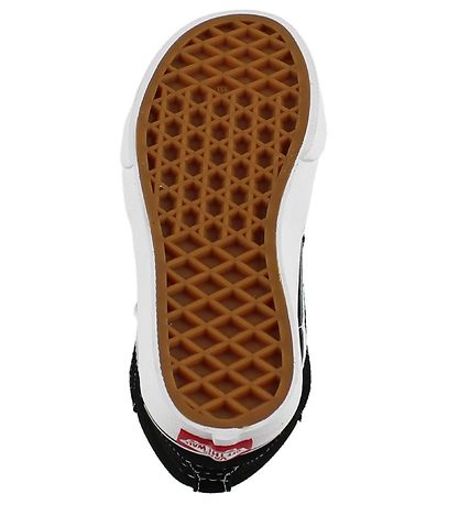 The interior is lined with both textile and leather. Underneath the sole is the classic Vans pattern of hexagons and diamonds.