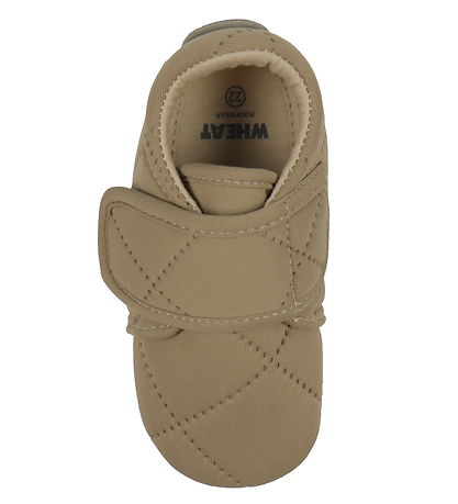Stylish Wheat slippers in brown with a quilted structure, and light gray suede on the heel cap with an embossed "W".