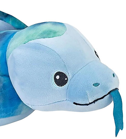 Beautiful Wild Republic soft toy shaped like a snake in shades of blue. The Wild Republic soft toy has a cute face with a blue tongue. It is very soft to hug and play with.