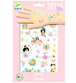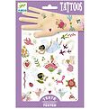 The Djeco tattoos consist of 2 sheets with lots of large and small motifs. The tattoos are placed directly on the skin with a damp cloth.