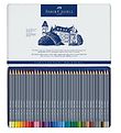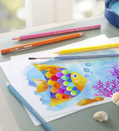 Fine Faber-Castell colouring pencils consisting of 24 watercolor colors and 1 brush. The brush can be used with the water-soluble watercolor colors.