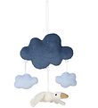 The Filibabba baby mobile has a thin ring of beech, where the pendants are attached with cotton string at different heights, so it looks as if they are floating in the air.
