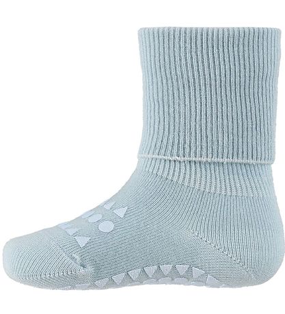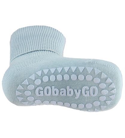 The GoBabyGo socks have a non-slip bottom of circles and triangles as well as the name "GObabyGO" in a rubber material. They have a long shaft of rib, so it is possible to make a fine fold. Around the ankle there is an elastic, which ensures that the socks stay on the foot.
