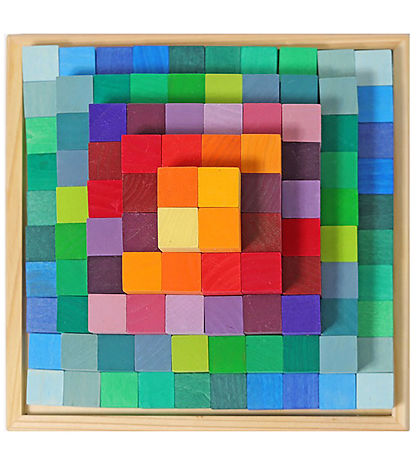 Colorful Grimms blocks consisting of 100 square blocks in different lengths. The Blocks can be used to stack and build countless things, including towers, castles, houses and much more. The Blocks stimulate the kid's imagination and creativity, and ensure hours of fun play.