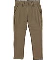 The Grunt trousers have long legs and they have internal adjustable buttons and belt loops at the waist. On the front there are two open pockets and on the back there are two cheat pockets. The trousers are opened at the front with a button and a zipper.