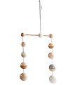 The Haba baby mobile consists of a stick with round balls, all put together by a string. Six of the balls on the baby mobile are divided in the middle, where the upper half of the sphere can be moved. The baby mobile is super decorative and good for keeping the little one busy and entertained.