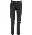 The jeans come with a practical, adjustable elastic waistband and belt straps. On the front, the jeans are opened with a hidden zipper and button. Both front and back, there are two large open pockets and a coin pocket at the left front pocket.