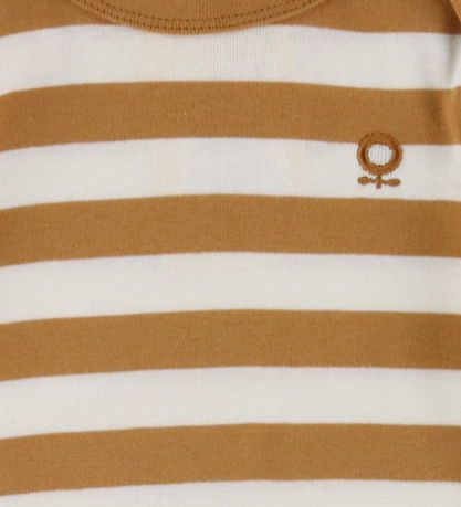Fine Katvig blouse in striped white and brown. On the left chest is a little logo embroidered in brown.