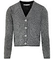 Smart Kids Only cardigan in black knitted with yellow and white stripes on the front and in the arm openings.