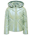 Lovely Kids Only puffer jacket in shiny mint green. The duvet jacket is in a smooth woven quality and has slanted seams.