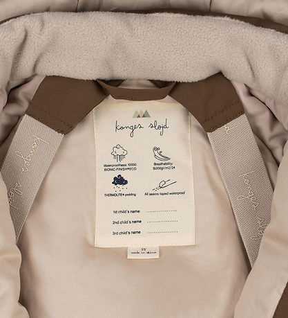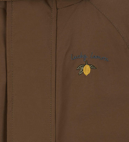 Beautiful Konges Sløjd snowsuit in brown with a little lemon embroidered on the upper left side.