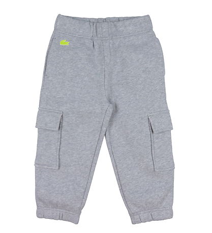 Nice Lacoste sweatpants in melange grey with a little, embroidered logo at the top of the right trouser leg.
