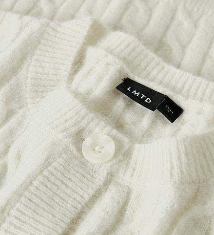 Beautiful LMTD cardigan in white with a cable knit pattern. The LMTD cardigan is designed with short sleeves and a round neckline. It closes at the front with continuous buttons.