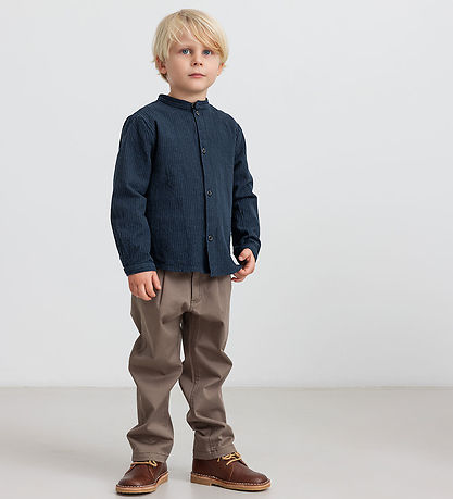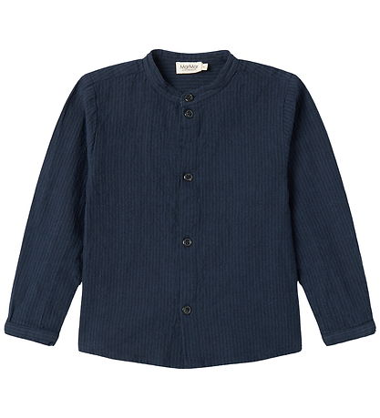 Beautiful MarMar shirt in a deep, navy blue colour with stripes. The Shirt has long sleeves and a round neckline. It is designed with a simple row of buttons at the front, which gives a stylish look.