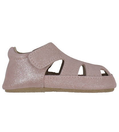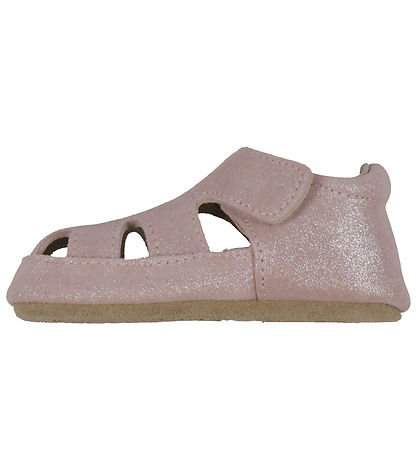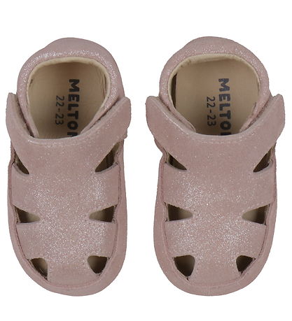 Adorable Melton ballerina slippers in pink suede with silver glitter.