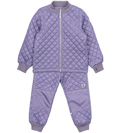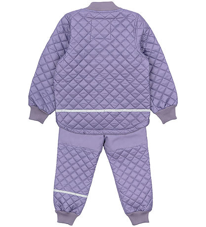 Lovely Mikk-Line thermo set consisting of a thermo jacket and a pair of thermo trousers in purple with a quilted structure.