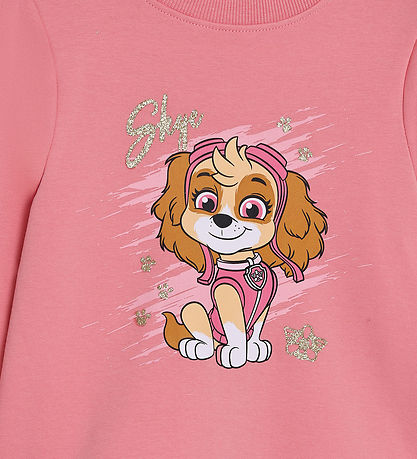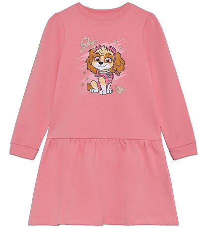 Inviting Minymo dress in a nice, pink shade with a Paw Patrol print on the front. The Dress has long sleeves and practical push buttons at one shoulder. The Minymo dress has ribbed edges at the throat and sleeves, as well as a slightly gathered skirt for a feminine look.
