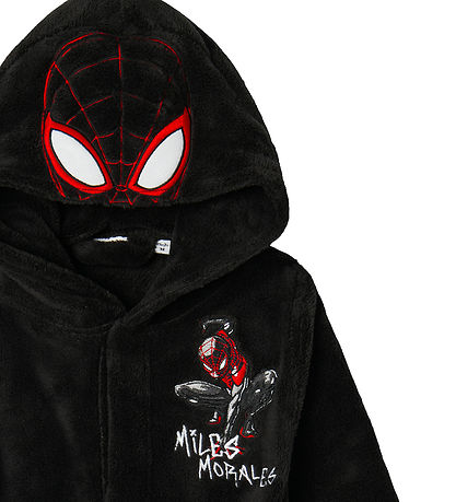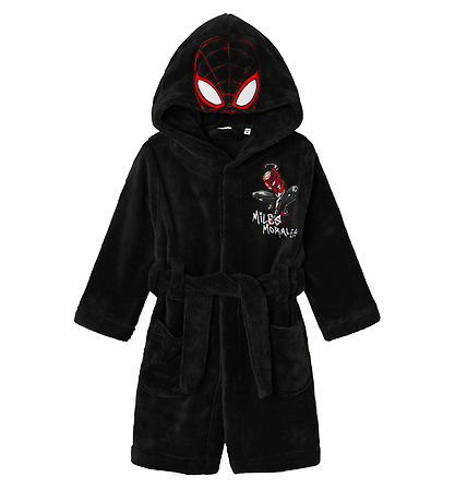 Nice Name It bathrobe in a dark shade with a hood and a fun Spider-Man motif on the front. The Bathrobe has practical pockets and a soft structure that ensures comfort.