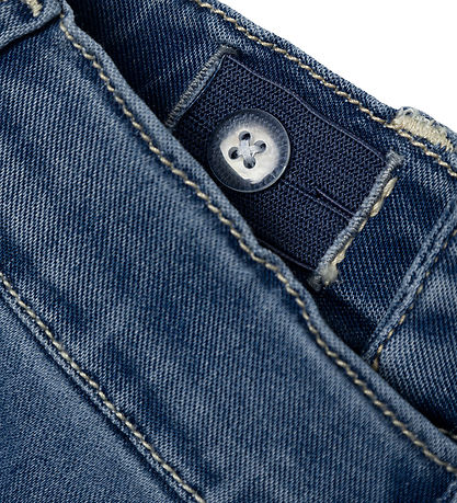 The Name It jeans can be cinched in at the waist with internal elastics, and they close with a push-botton. The jeans have two pockets and a coin pocket at the front and two back pockets as well as practical belt loops at the waist.