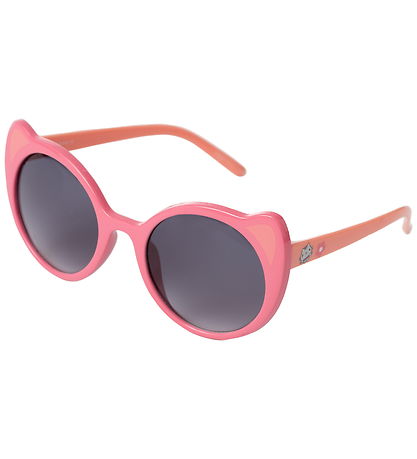 Charming Name It sunglasses with a pink frame and round lenses. The frame has cat-ear-like details that add a playful touch, and a little motif can be seen on the sides.