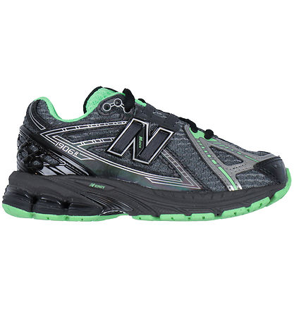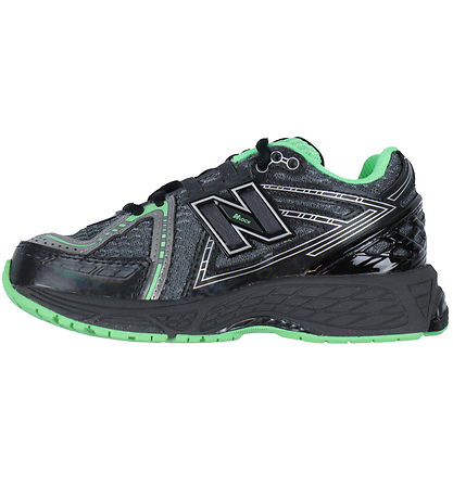 Cool New Balance shoes in black with green and silver details. On the sides is the familiar "N".