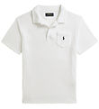 The Polo Ralph Lauren polo has short sleeves with narrow ribbed edges, and the neck opening has a classic collar with a ribbed structure. The polo opens with white buttons.