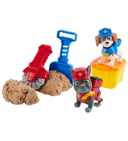 The Rubble & Crew playset contains a shovel and a rolling knife, which can be used to shape the accompanying kinetic sand.