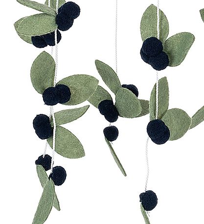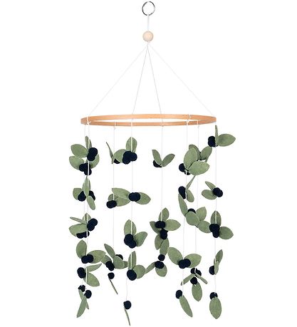 ThatThats Mine baby mobile consists of a ring with strings in different lengths with blueberries. At the top there is a metal ring so it is easy to hang up over the changing table, playpen or bed.
