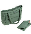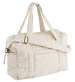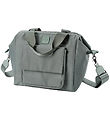 The Changing bag has two strong handles and a long, removable and adjustable strap for the shoulder or to hang on the pram. The Changing bag is lightly quilted.