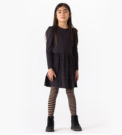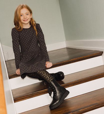 Nice The New dress in dark grey with an all-over-print of gold dots.