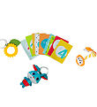 The Tiny Love pram chain includes various sensory elements that stimulate the kid's curiosity and play. It includes, among other things, several rattles, crackle paper, a soft silicone teether, a mirror and much more.