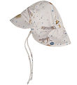 The Wheat legionnaire hat has a round head shape, with a good brim at the front and a slightly longer brim at the neck. There are practical ties under the neck so that it stays in place as it should. There is an elastic sewn into the neck so that it fits well. The legionnaire hat is made of a nice cotton quality.