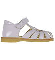 Fine Angulus sandals in shiny silver with braided straps over the foot.