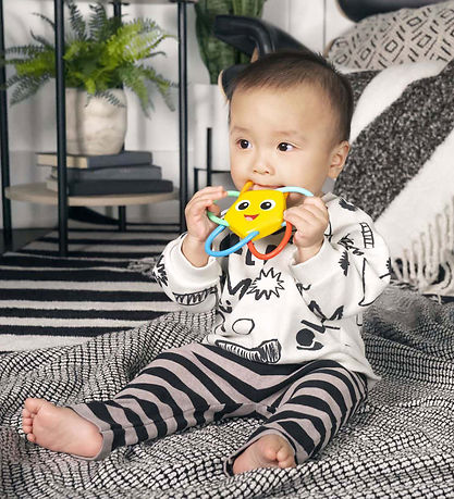 The Baby Einstein teething toy has a cute face with teether in great colours, and a ball that rattles when you shake it, making it an appealing and stimulating toys for the little ones. The unique shape makes it easy for little hands to grasp.