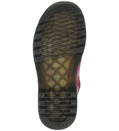 The Dr. Martens boots have a mid-high shaft that goes over the ankle. They are tightened with shoelaces at the front and on the inside there is a zipper, so the boots are easy to get on and off. They have a Fast heel and toe cap, which gives the foot good stability and protection. There is a practical strap at the back and the inside is lined with pink textile. The Boots have AirWair outsoles with built-in air holes in the rubber soles, which feel soft and comfortable to walk in. Under the bottom there is a tread pattern, which ensures good footing.