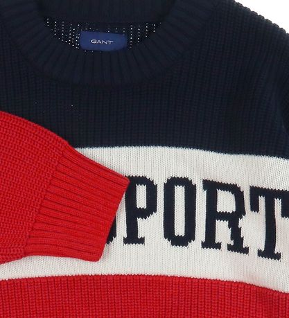 Nice GANT blouse in red, white and navy knitted with "GANT Sportswear" written in navy.