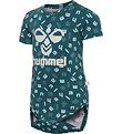 Cute Hummel bodysuit in plain dusty green with print of the brand's logo on the front in white.