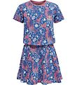 Adorable Hummel dress in dusty pink with an all-over-print of dandelions and a white logo print on the left chest.