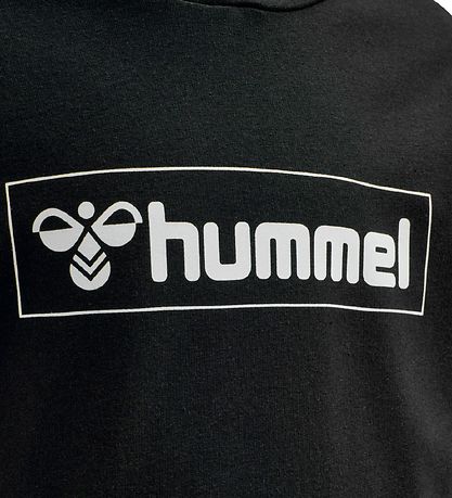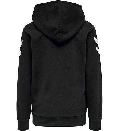Beautiful Hummel hoodie in black with a print on the front of "Hummel" and the Hummel bee in white. Down both sleeves there are white shevrons.