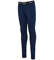 Beautiful Hummel leggings in melange purple with white Hummel shevrons at the bottom of the left leg. The Hummel leggings have a wide elastic at the waist and a tight fit.