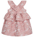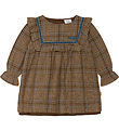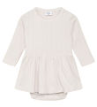 The Hust and Claire dress has long sleeves and a round neckline with a narrow ribbing. It can be opens at the left shoulder with two mother-of-pearl buttons. The Dress has wide ribbed edges edges in the arm and waist openings and is in a straight shape. The Dress is in a nice and stretchy knit quality.