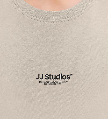 Stylish Jack & Jones t-shirt in a light, beige shade. The T-shirt has a discreet logo print with the text "JJ Studios" printed on the chest, which gives a simple expression. The Jack & Jones t-shirt has a round neckline with a fine ribbed edge that complements the simple design.