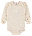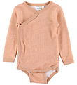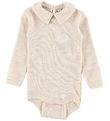 The Bodysuit has long sleeves and has a turn-around function so that it can be buttoned all the way up with push buttons. This function makes it super easy to get the bodysuit on and off the kid without having to pull it over the head. Between the legs, the bodysuit can also be opens using push buttons, which makes it easy to get to the nappy. The Bodysuit is edged with rib all around for increased comfort.