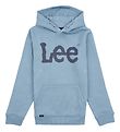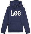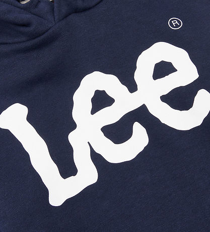Stylish Lee hoodie in a nice navy colour with a large white logo print on the front.